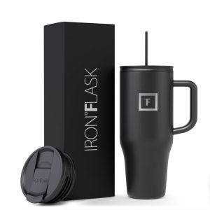 Meet your new favorite fashion accessory! Iron Flask’s BPA-free stainless steel travel tumbler. It’s durability. leak-proof design. and extra lids make it the perfect hydration companion. Whether your fueling up during a workout. or making sure you have an ice cold drink on your commute. Iron Flask is ready to join you on whatever adventure is next. Fits in a car cupholder holder. Hand wash only.