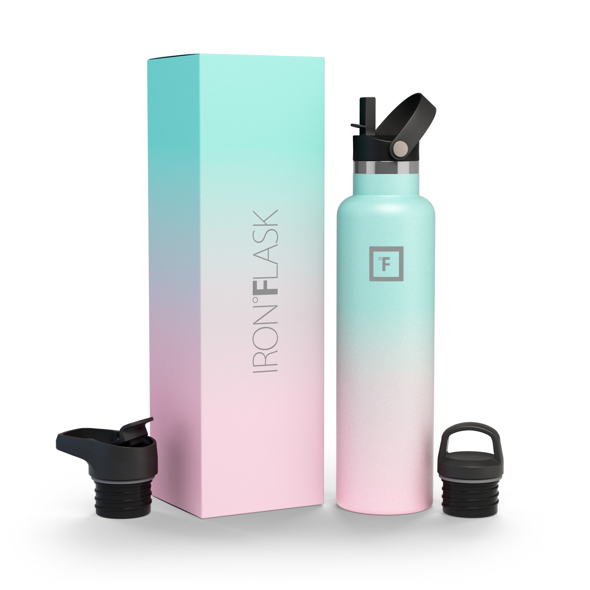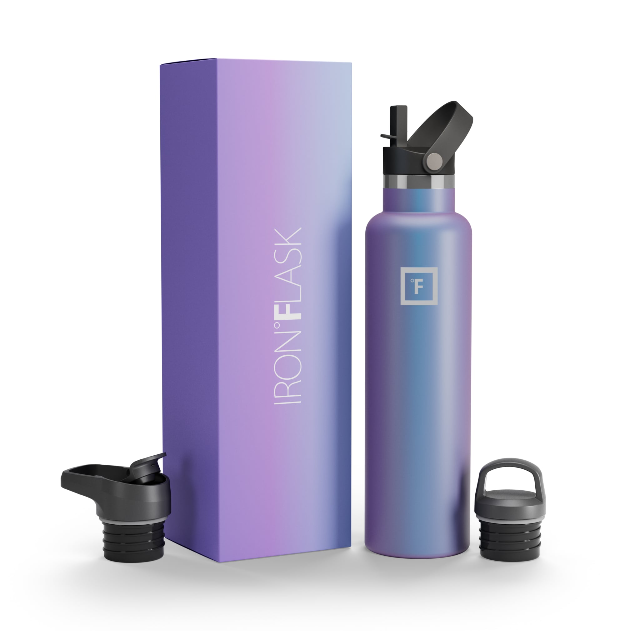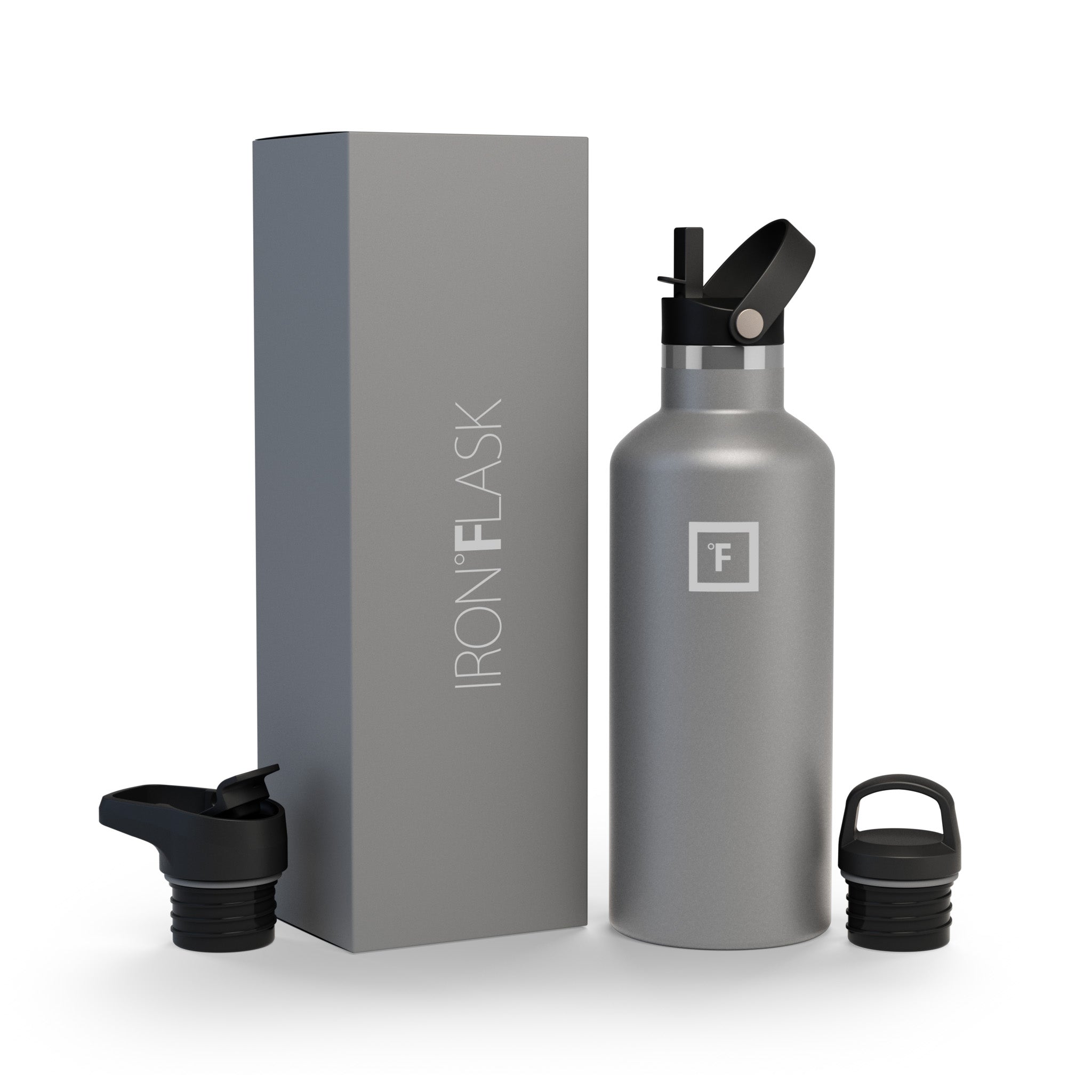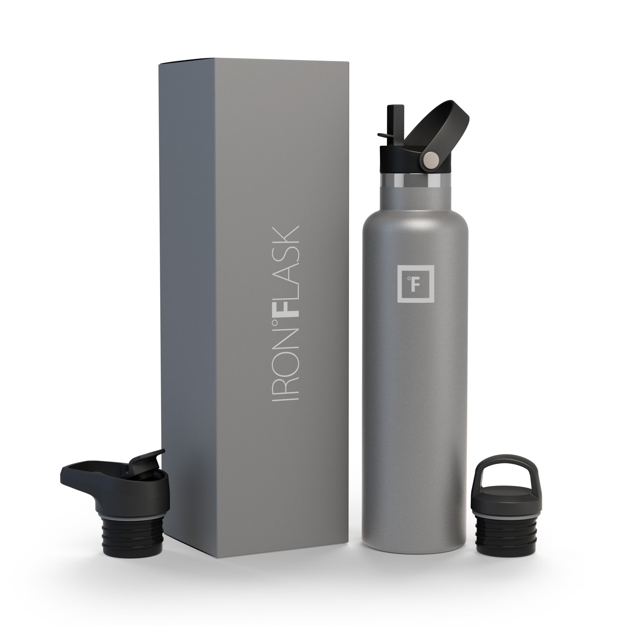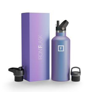 Have you ever been so thirsty that you spilled water down your chin and neck while drinking? No? Oh… yeah… neither have we. And this cup holder-friendly Iron Flask 24 oz Water Bottle With Spout Lid ensures we never will. thanks to its narrow mouth and easy-sipping flex straw lid. We also added a screw-on lid and a flip lid with a handle for you to mix and match with your bottle. Vacuum-insulated high-quality stainless steel keeps your drinks hot for 12 hours and cold for 24 hours with no bottle sweat. so no matter when you take that first sip. it always feels like a brand new drink.